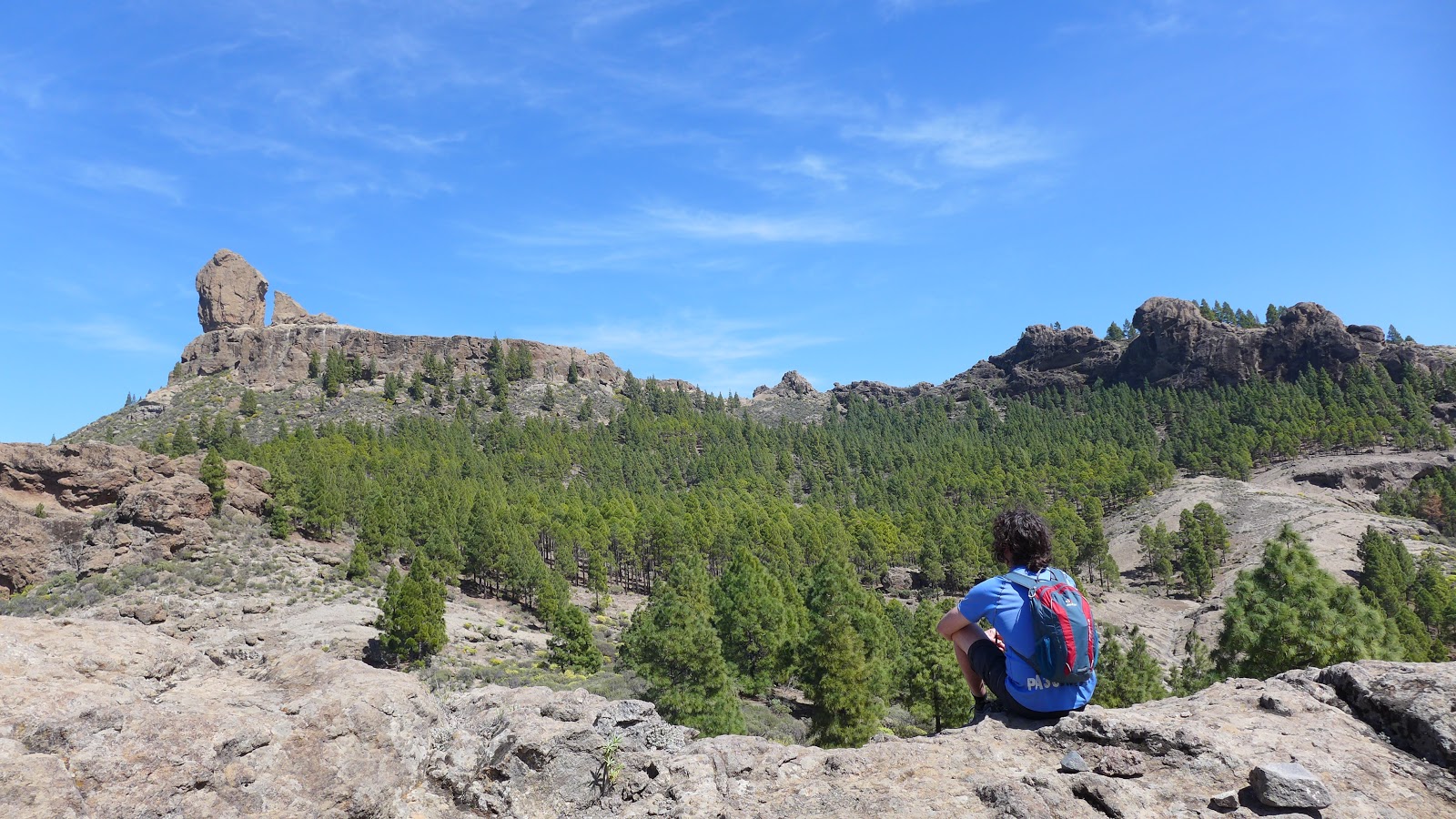 Contemplant el Roque de Bentayga i la Caldera de Tejeda des del mirador del costat del Roque Nublo |